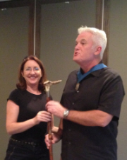 Ali King handing over to Chuck Jefferey